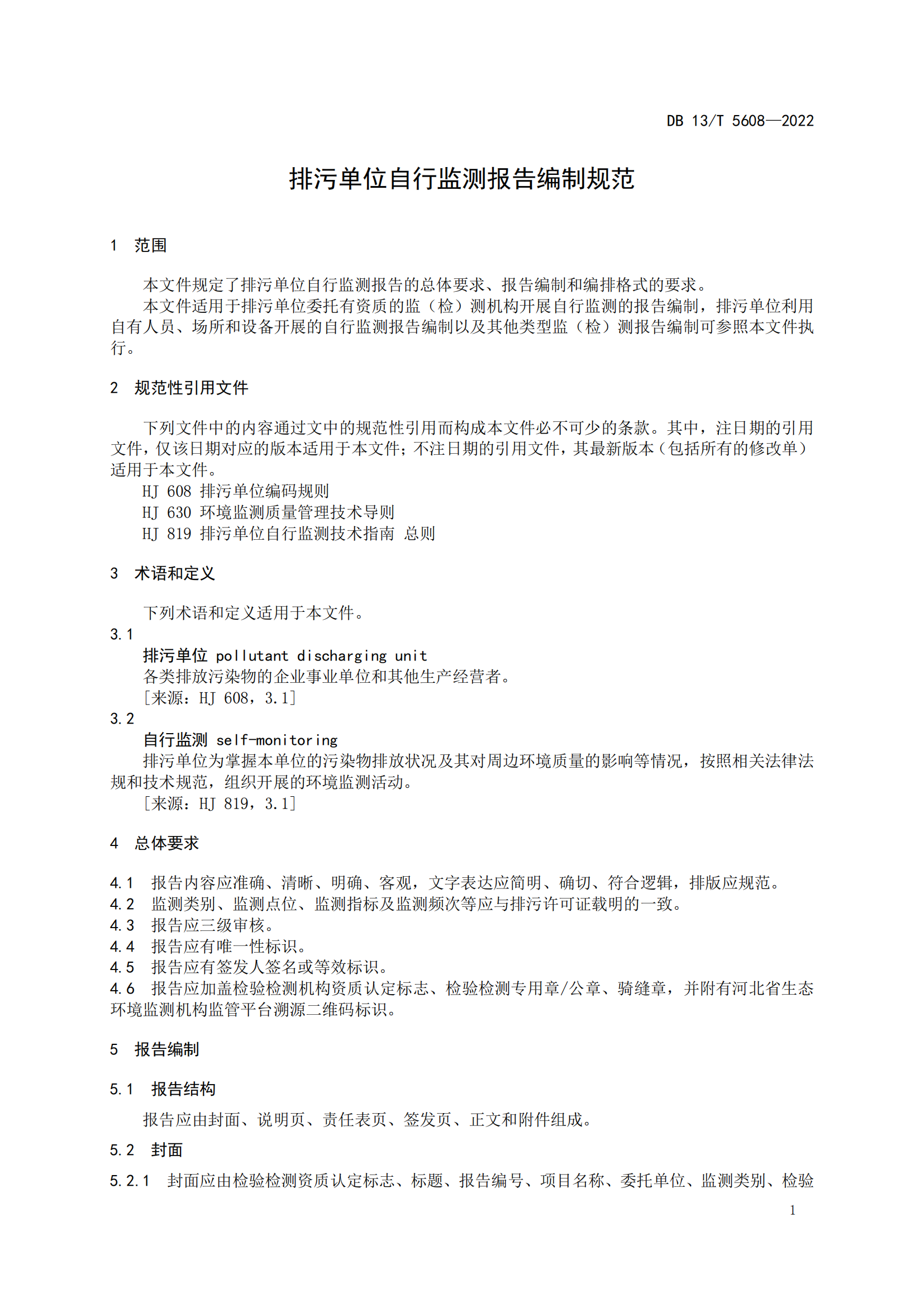 河北省生态环境厅于2022年8月4日发布《排污单位自行监测报告编制规范》,在该文件中规定了排污单位自行监测报告的总体要求、报告编制和编排格式的要求。